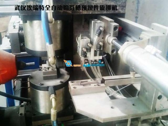 最后是第四代:全自動哈芬槽鉚接機預埋件旋鉚機,由武漢埃瑞特受出口客戶委托研發的全自動哈芬槽預埋件旋鉚機已經完工,該機是目前行業集中度,功能,效率首屈一指的哈芬槽預埋件制造設備,其可以完成槽道的自動進料,自動數控連續沖孔,自動篩選鉚釘,自動裝入鉚釘,自動鉚接,自動移動位置,如裝入切割機還可以完成自動按設定長度切割材料。其先進性可見一斑。