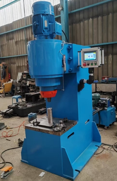 超重型噸位鉚接機是我公司技術人員耗時半年研制的,具有自主知識產權的大噸位鉚接機。 該機可冷鉚直徑在50毫米以下熱鉚70毫米以下的實心鋼鉚釘,廣泛應用于航天科技,重型水電站發電機組,大型零部件等加工行業。設備通過專用的液壓回路和回轉機構,設備噪音被降到極低的水平。。該機參數由客戶零件特點具體設計,可以做到產品生產的最優化。電控系統可以加裝采用PLC控制或單片機輕觸式液晶 電控箱。