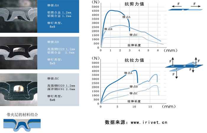 自沖鉚(鎖鉚,自沖鉚槍,自沖鉚鉗,自沖鉚設(shè)備)不同材料連接強(qiáng)度分析