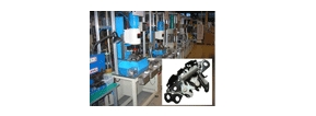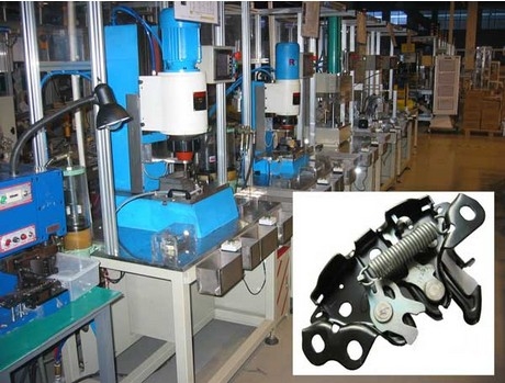 Línea de remachado de la cubierta del motor del coche: La línea de producción incluye las funciones de remachados (4), remache tubular, pintura, apretar los tornillos, montaje automático de resorte, prueba integrada, impresión neumática, y el ritmo de producción dura 35 s.