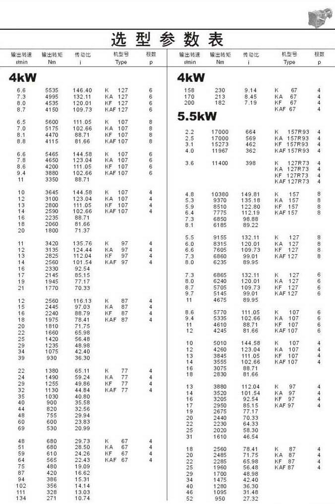 選型參數(shù)表4kW(續(xù))和5.5kW