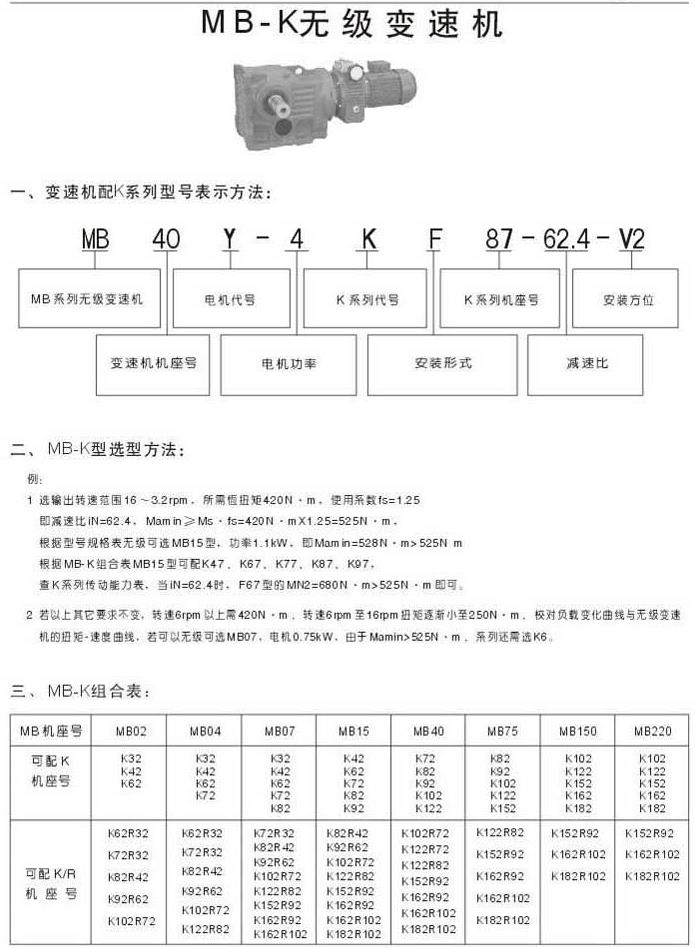 MB-K無級變速機型號表示法選型方法MB-K組合表