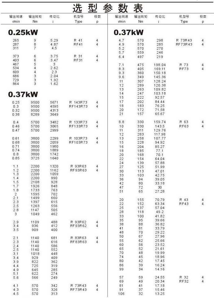 選型參數表0.25kW(續),0.37kW