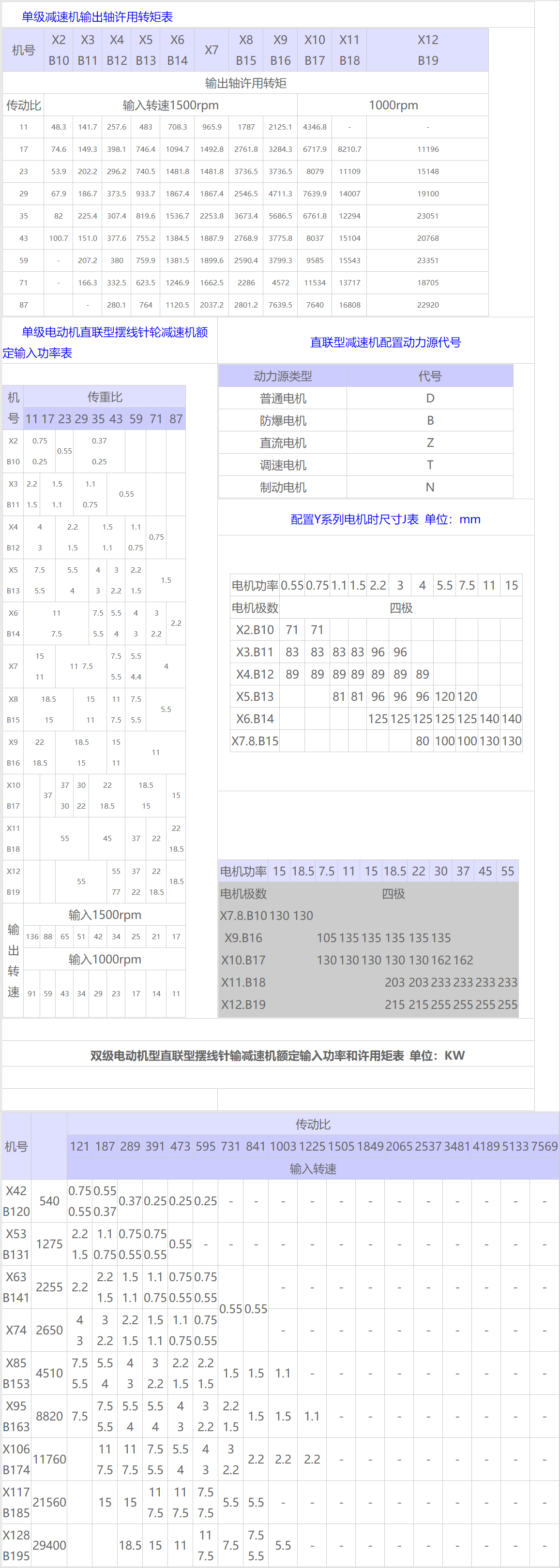 擺線針輪減速機的轉矩、傳動比和輸入功率